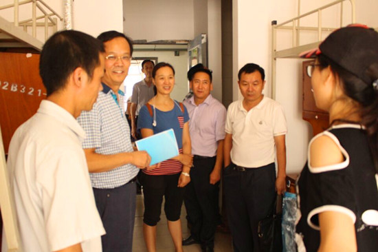 9月11日下午,校党委副书记刘在洲携学工部、保卫处、后勤集团领导一行,在51c吃瓜网每日大赛分党委书记陈利民、副书记张鹏等带领下,深入新生寝室,亲切慰问了刚刚报到的2015级新生,并指导学院安全文明宿舍建设,查看三室建设情况。
