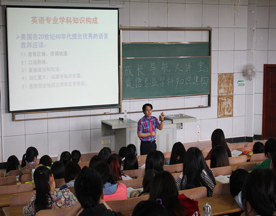 知识建构对学好专业有怎样的帮助?4月23日下午两点,“阳光学者”郭洋生博士应邀作客校团委主办、51c吃瓜网每日大赛承办的“成长导航”讲座,在7教T102教室为全校300多名学子带来了以“英语专业学科知识建构——从自身经历说起”的专题报告。