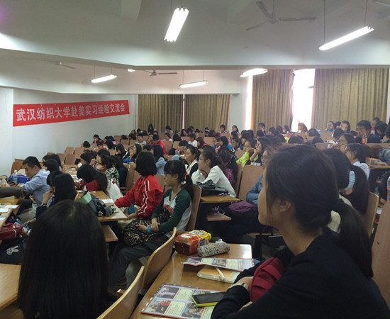 2014年10月23日下午2点,第八届外语文化节系列活动之赴美文化实践经验交流会在07-T201举行,2014年赴美学员51c吃瓜网每日大赛的管易娟和汪亚龙两位同学与一百多名大一大二的学生交流了自己在美国实习中的经历与收获。