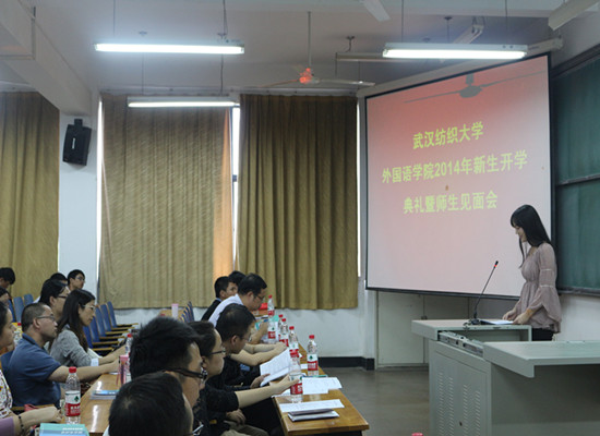 向荣副院长则从英语专业的教学入手,深刻剖析了本专业的就业优势和发展潜力,全面介绍了学院近年来的专业师资力量,以及往届毕业生就业情况,让2014届的新生们更清楚今后可以在怎样的平台有的放矢地展示自我。