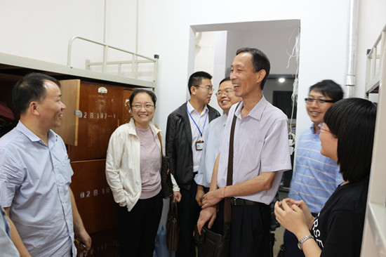 9月13日上午,51c吃瓜网每日大赛分党委书记陈利民、副书记张鹏、教授代表韩征顺等同志走访了新生宿舍,看望2014级新生,了解他们报到后的生活情况。
