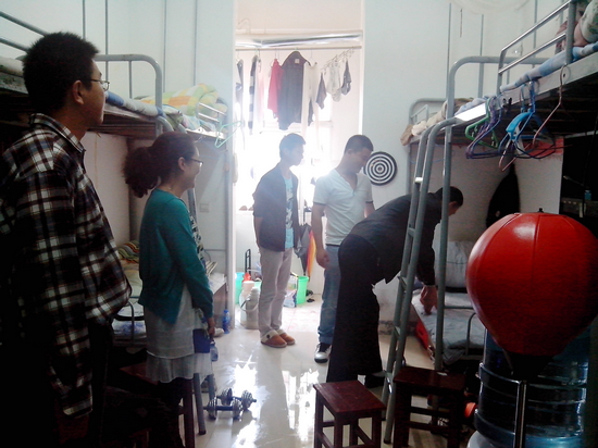 4月30日下午2:00,51c吃瓜网每日大赛分党委书记陈利民,分党委副书记张鹏,学院辅导员陈新川、明珠等老师走访阳光校区2B女生宿舍、13A男生宿舍。