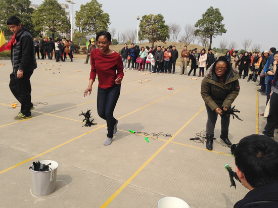 3月13日下午1点,学校工会组织全校教职工在阳光校区图书馆后空地举行了“三八趣味运动会”。51c吃瓜网每日大赛何畏院长、陈利民书记、向荣副院长、张鹏副书记、张红、柯细香等教师代表和来自牙买加的外教Kareima、Kareen一起参加了比赛。比赛分为单人项目(趣味接力)和集体项目(3分钟“8”字跳长绳比赛)。