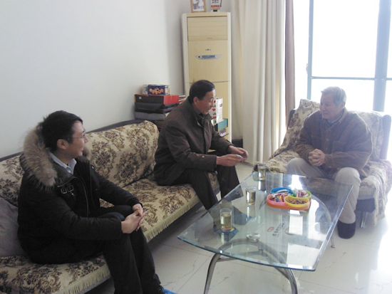 学院领导看望林丽梅、刘先万、隋思忠3位离退休老教授时,感谢他们对学院发展做出的贡献,并祝福他们身体健康,春节愉快。隋思忠教授虽然退休,但坚持每天在校园网、学院网关注学校、学院发展,他对青年教师发展,学校的跨越式发展提出了很多很好的建议。刘慧博士受学校委派远在俄罗斯访问进修,学院领导驱车前往汉阳刘慧博士父母家中,探望慰问了刘慧博士的父母及小孩。走访中,陈书记和唐旭日博士、陈奇敏博士、韩征顺教授针对学术前沿问题、学科建设、专业发展互相交换了思路,陈书记表示学院一定会为博士教授们搭建良好平台,让他们充分施展自己的才华,谋求更大的发展。学院领导前往东湖校区王敬忠老师家中,送去学院的关怀和祝福。在曾令宙老师家中,陈利民书记鼓励曾老师利用自己在计算机知识上的造诣,充分施展自己的才华。