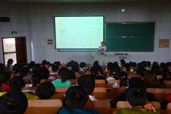 学院党委书记陈国新在活跃的气氛中寄语新生,提醒同学们要认识英语专业,同时,从“知识、能力、素质”这三个方面认识自己。