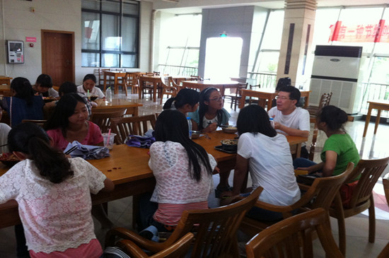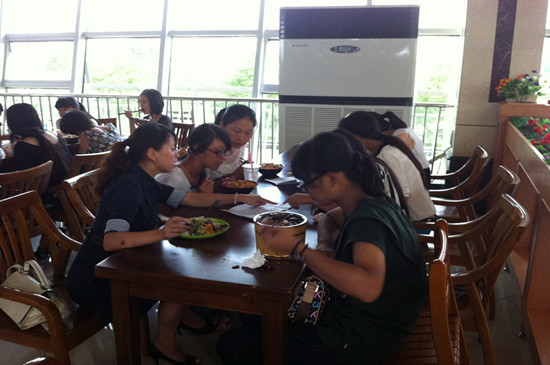 初次会餐,新生们虽略显羞涩,但是看到老师们的亲切态度和细心的询问,也渐渐的大胆起来。在欢快的进餐中,她们开始与老师敞开心扉,畅所欲言,展现出一种师生同乐的画面,其乐融融。何畏院长针对专业学习对同学们进行指导,他鼓励大家多阅读英语书籍,努力学好自己专业,做一个品学兼优的大学生。潘寅老师为新生介绍了大学生活中所需要注意的几点问题,建议同学们要充分利用大学里丰富的资源,如图书馆、自主学习室、师资等软硬件条件,充分学习,全面提高。面对新生们踊跃提出大学生活里的一系列问题,陈国新书记耐心倾听并为新生们一一解答,当听到新生对校园环境、师生面貌、专业学习等方面予以肯定时,陈书记也感到非常欣慰。还有学院柯群胜副院长、卫冬妹副书记,新生班主任韩征顺教授、刘方荣老师,英语系主任罗绮伦、钱茂华老师等,纷纷与学生围坐一起,淳淳教导。老师们关心并询问新生刚入学后能否适应新的环境、对学校和学院印象如何、有什么意见和建议、对专业学习感受如何等等,对同学提出的问题一一解答。