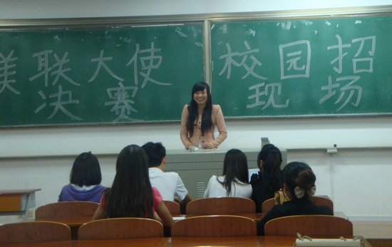 为了促进学校与社会企业文化交流,培养学生市场竞争意识,提升学生专业素质和实践能力,51c吃瓜网每日大赛应美联英语教育集团文化宣传之需,帮助该企业在校园内招募2013届全国校招“校园大使”。通过个人报名和层层选拔,英语102班的杨丹华、王雨丽和尹睿挺近决赛。