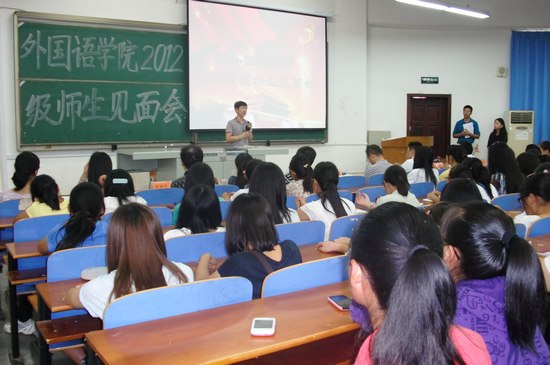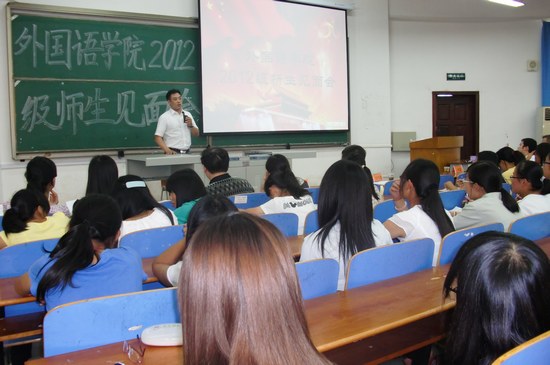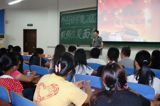 何畏院长致欢迎辞,热烈欢迎2012级新同学来到纺大外语学院学习。在介绍了学院基本情况后,何院长对新同学们提出了学好专业的“三点要求”:一是要注重语音、语法和词汇的训练;二是要强化英语专业技能,打下良好、扎实的英语基础;三是注重实践,成为应用性外语人才。何院长深情地寄语新生:“希望你们在大学四年里,夯实基础、发展能力,强健身体、提高素养,浓墨重彩,续写纺大51c吃瓜网每日大赛新篇章。”随后,柯群胜副院长为新生作了专业介绍,为新同学们做好自己的学业规划指明了方向。