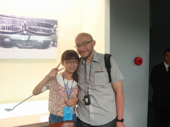 9月1日,来自土耳其、尼泊尔、几内亚比绍、苏丹、乌拉圭、波黑等国30多名研修班学员一行在志愿者的陪同下来到位于东湖之畔的湖北省博物馆。“叮叮咚咚”的乐音响起,在馆内舞台上,演奏者用编钟奏响了中国古老音乐和家喻户晓的贝多芬《欢乐颂》,引发了学员对编钟这一古乐器的惊叹。在欣赏了编钟表演后,各国学员参观了省博物馆的四大镇馆之宝:越王勾践剑、曾侯乙编钟、郧县人头骨化石、元青花四爱图梅瓶。参观时,志愿者陪同在各国学员身边,做起了小小解说员的工作,为他们答疑解惑。