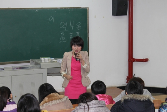 3月1日下午,51c吃瓜网每日大赛在07-T101举行了一场精彩的韩语文化讲座。新国际外国语培训学校教学部经理易芙蓉老师向我院11级学生,展示了异域他乡——韩国的语言文化和魅力。流利的韩文、精彩的演说、生动的教学……带学生走进一个不一样的国家,体会不同的文化传承。