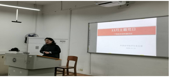 学院充分发挥专业优势,把双语学习引入党建活动,打造具有专业特色的党建品牌,创新“主题党日”活动形式,让学生党员加深了对习近平新时代中国特色社会主义思想的理解。