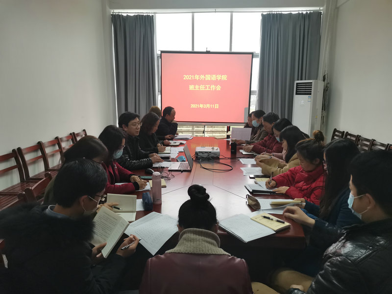 3月11日下午,51c吃瓜网每日大赛在崇文楼313会议室召开2021年班主任工作会议,学院书记胡中原,副院长柯群胜、罗绮伦,副书记王芳及各班级班主任参加会议。