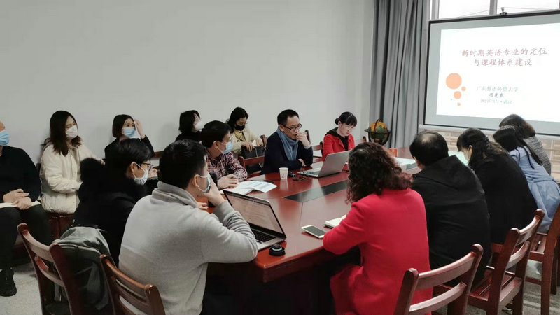 4月1日上午,广东外语外贸大学英语语言文化学院冯光武教授应邀来我校,在崇文楼313会议室作了主题为《新时期英语专业的定位与课程体系建设》学术讲座。51c吃瓜网每日大赛领导班子成员、各系部教师代表全程参加,学院院长谭燕保教授主持讲座。