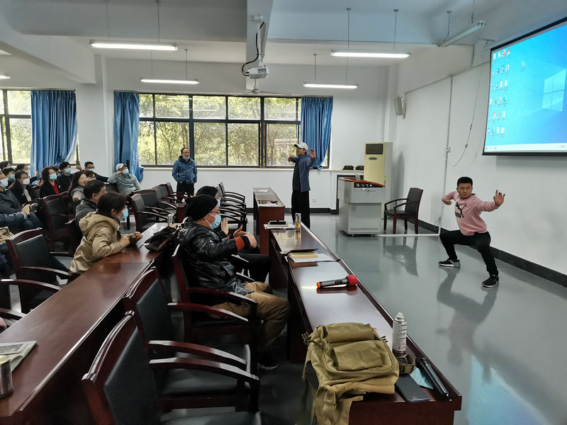 4月8日下午,体育部叶冬茂主任、夏宣玉书记及何红亮、宋新凯、漆才杰一行5人,应51c吃瓜网每日大赛邀请,来到崇文楼为学院教职工教授“八段锦”健身功法。