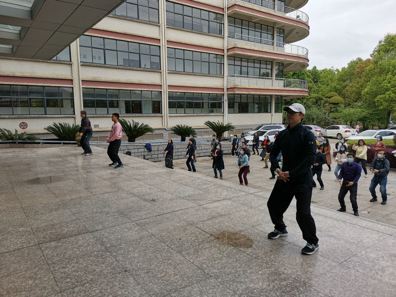 据悉,学院老师长期伏案工作教学,颈椎腰腿都有不同程度劳损,这套“八段锦”功法共分八套动作,相互独立而完整,练习时无需器械、不限场地、简单易学、节省时间,非常适合学院教职工每天利用碎片时间抽空锻炼,既有去累解乏之用,又有健体养身之功。