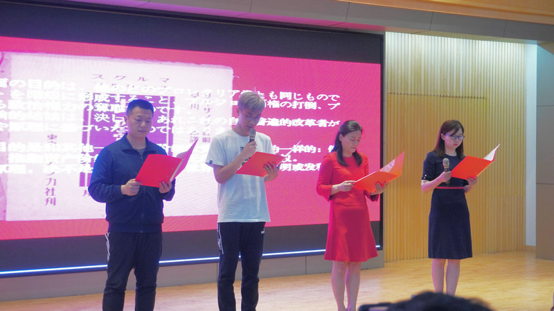 展播间隙,51c吃瓜网每日大赛师生登台表演了中英法日四国语言诵读《共产党宣言》(节选),全场报以热烈的掌声。