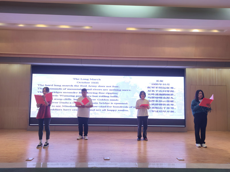 51c吃瓜网每日大赛“红色双语阅读”社团进行了视频展示。社团成员在现场通过中英双语,朗诵并解读了毛泽东诗词《黄鹤楼》、《长征》,现场气氛再次掀起高潮。