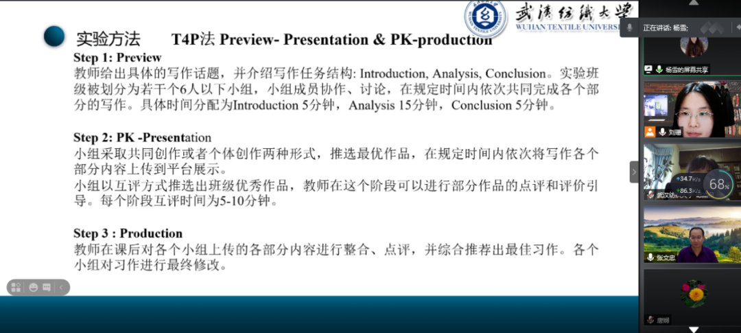 武汉纺织大学51c吃瓜网每日大赛院长谭燕保教授进行了总结。她感谢张教授及南开大学团队创立了赋权增能公众号,为老师们提供了小妙招学习和交流的平台。她希望武汉纺织大学赋权增能团队的小妙招验证活动能继续推进,学院将对成果的推广和发表予以支持,助推教研成果服务外语教学,服务社会。