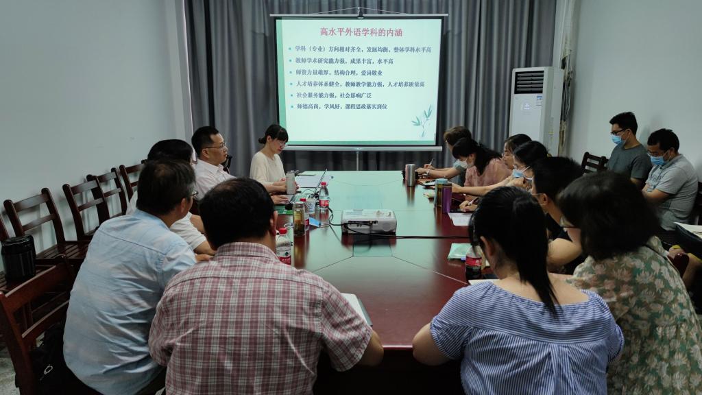 之后从师资队伍、办学条件、教学科研管理制度、学科带头人等方面讲述了高水平外语学科建设面临的挑战和困境。并进一步阐述了高水平外语学科的内涵。其内涵体现在学科方向的齐全、发展均衡、师资结构合理、人才培养体系健全、社会服务能力强、教风学风良好等等方面。