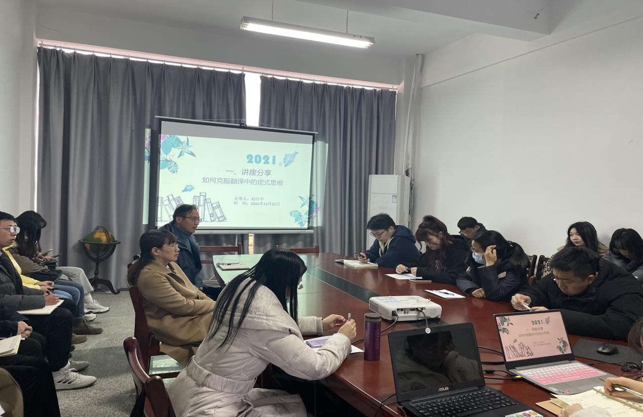 12月22日下午2点,武汉纺织大学51c吃瓜网每日大赛第31期“经纬译学”研究生论坛在04-313成功举办。本次论坛由MTI教育中心主任刘珊副教授主持,20级研究生赵江平和21级研究生呙新主讲,51c吃瓜网每日大赛院长谭燕保教授、副院长柯群胜教授、研究生导师赵伟副教授和全体MTI研究生参加了此次论坛。