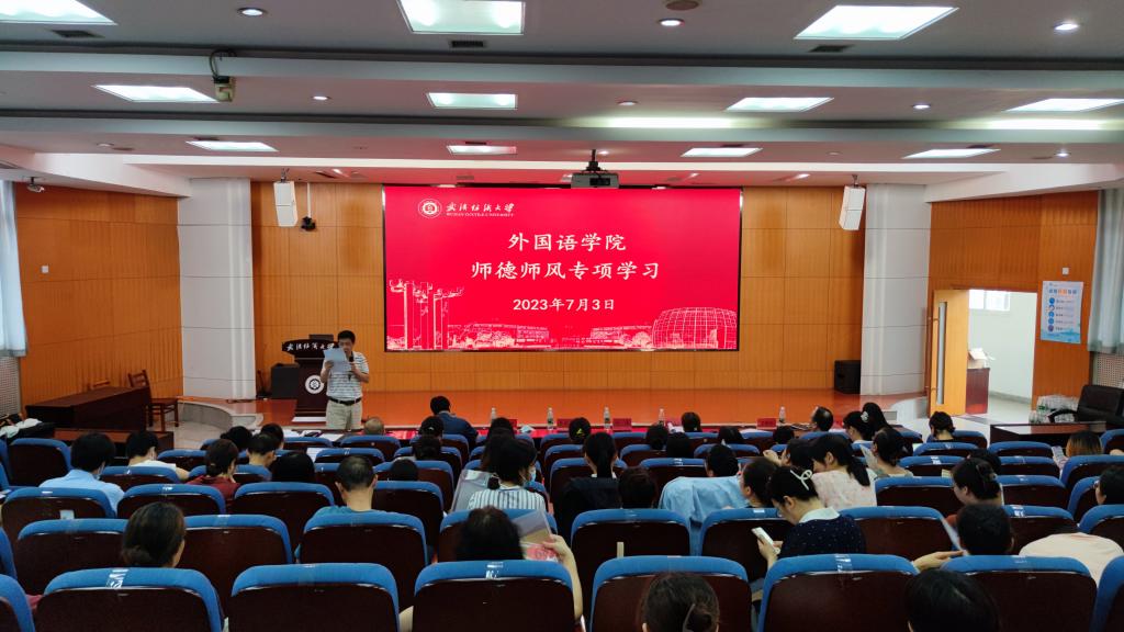 胡中原传达了学校《关于开展2023年春季学期期末师德师风专项学习的通知》有关要求,领学了《新时代高校教师职业行为十项准则》、《关于高校教师师德失范行为处理的指导意见》、《关于完善武汉纺织大学教师师德师风建设工作体制机制的实施意见》等师德师风相关政策性文件,“教育部公开曝光第十二批7起违反教师职业行为十项准则典型案例”的具体内容。