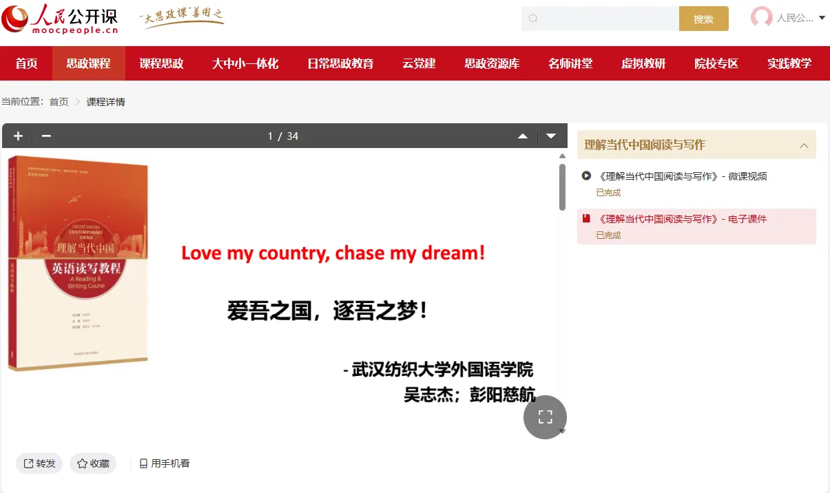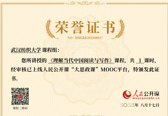 8月17日,51c吃瓜网每日大赛《理解当代中国阅读与写作》课程团队与马克思主义学院共同研磨的大中小一体化思政课程、课程思政示范课的单个课程视频已成功上线(人民公开课-大思政课MOOC平台 (people.cn)),荣列为“人民公开课大思政示范课”。