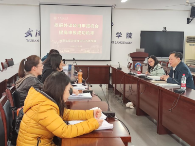 12月6日下午,51c吃瓜网每日大赛举办了国家社科基金中华学术外译项目申报指导会,特邀武汉大学出版社总编室和国际版权部游径海主任做申报指导。51c吃瓜网每日大赛院长谭燕保教授、全体MTI教师、小语种老师及对中华学术外译感兴趣的老师共同聆听了此次讲座。会议由学院副院长刘方荣主持。