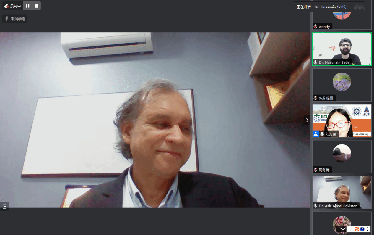 教师发言结束后,巴基斯坦艺术和社会科学学院院长Dr. Asir Ajmal作了点评。他引用孔子的话“有朋自远方来,不亦乐乎?”“学而时习之,不亦乐乎”表达了对老师们研究成果的赞赏,然后逐个简明地点评了每位老师的发言。他从老师们展示的各种教学法和研究成果中看到老师们对传统文化的重视、教学方法的多样性、对学生批判思维能力和社会责任感的培养,高度称赞这次分论坛是一次“信息量大、有启发意义”的论坛。