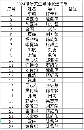 2024级研究生导师双选结果公示