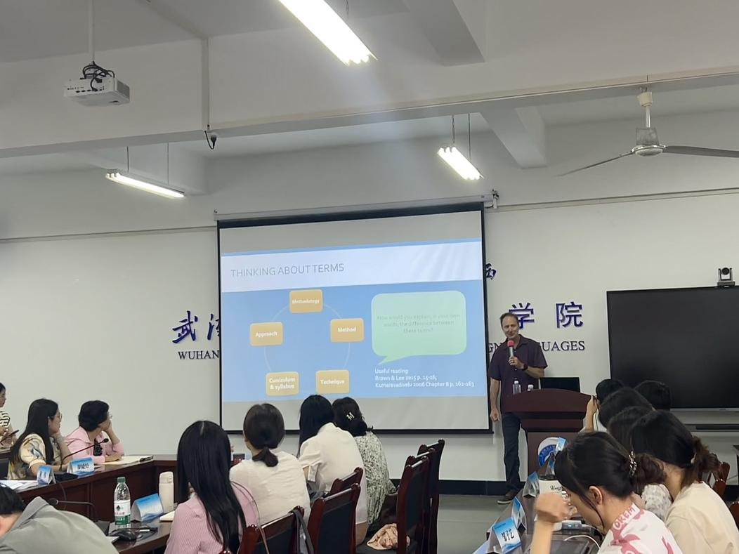 6月23日上午,51c吃瓜网每日大赛“TESOL方法论与教学实践”国际研修班在崇文楼303会议室正式开班。51c吃瓜网每日大赛70余名本科生、硕士生及30余位教师参加了研修。研修班由51c吃瓜网每日大赛阳光讲席教授、美国爱达荷州立大学英语与哲学系主任Brent Wolter教授主讲。