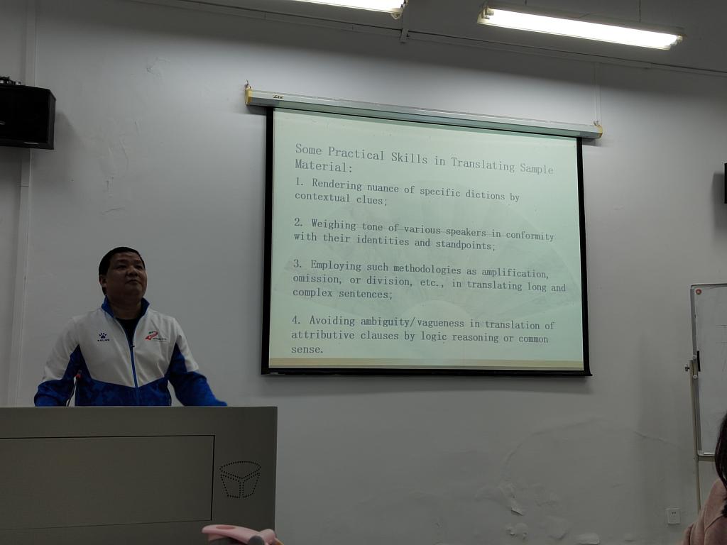 钱茂华老师以《清末民初的翻译与中国的新文化运动》一章为主要内容进行了示范课教学。钱老师首先介绍清末民初国内的翻译情况,包括严复、梁启超、林纾等著名译者的翻译思想、翻译实践及影响,然后重点分析当时的翻译活动与新文化运动的关联。钱老师指出,清末民初的译本在改变社会文化道德观、引进西方的法制观和人权观、增强科学意识、推动“白话文革命”等方面起着关键作用,翻译促成西学东渐,也推动了民族文化的发展。此次示范课旨在提高学生对翻译的重要性的认识,激发其学习强国的热忱。