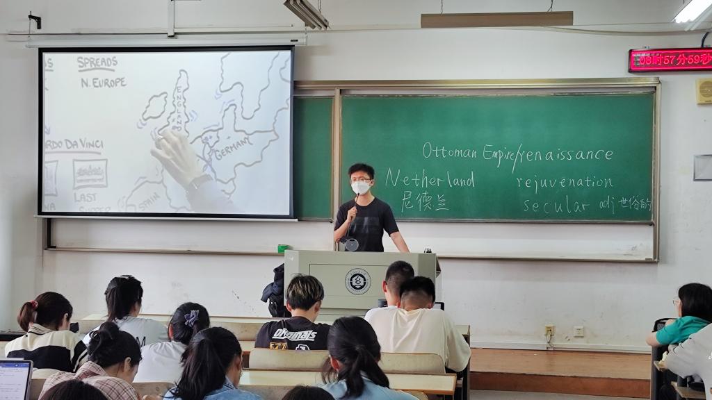 51c吃瓜网每日大赛英语系于4月19日上午在03-309教室开展了李顺亮博士的《西方文明史》课程现场教学观摩活动。51c吃瓜网每日大赛英语系主任唐娴、MTI中心副主任陆雪芹和教师代表王辞参加了李博士的课堂现场观摩。