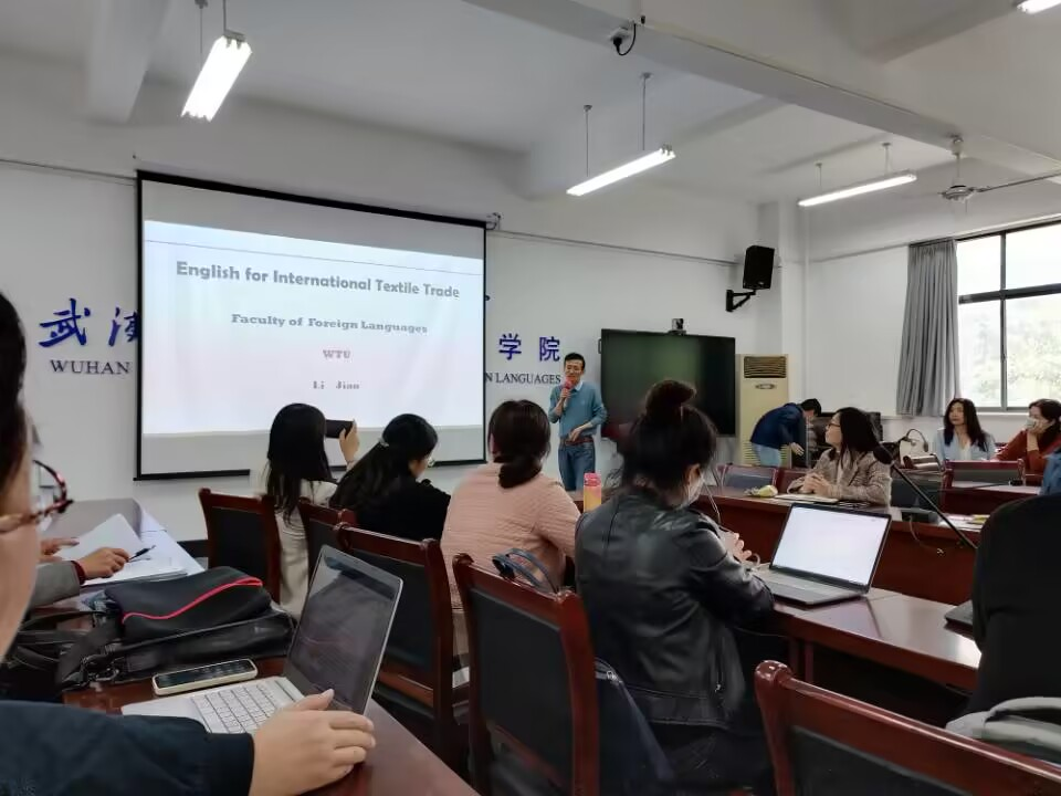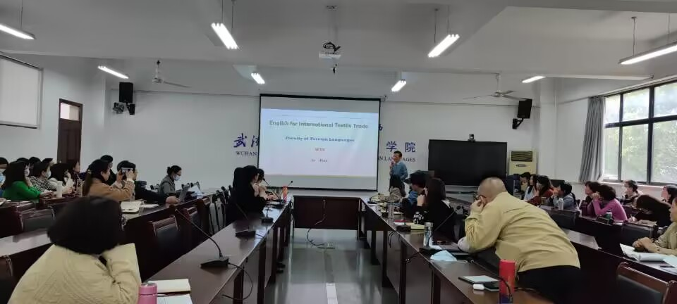 51c吃瓜网每日大赛商务英语系于4月27日下午在04-303会议室开展了黎健老师《纺织贸易英语》课程的现场教学观摩活动,51c吃瓜网每日大赛全体教师参与了本次教研活动。