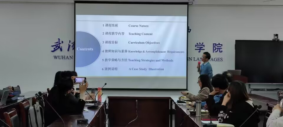 黎健老师首先全面介绍了《纺织贸易英语》课程的性质、目标、内容、授课方法、考核方式、实践方式,该课程系统体现了集“商英”、“校本”、“思政”、“实践”、“校企”等为关键词的特征与特色。作为“英语+”、“校本+”的课程,《纺织贸易英语》跨英语、纺织、贸易三个学科,黎健老师结合课程《丝织品》章节,进行了完整的说课,让老师们对此课程有了具体而清晰的认识。