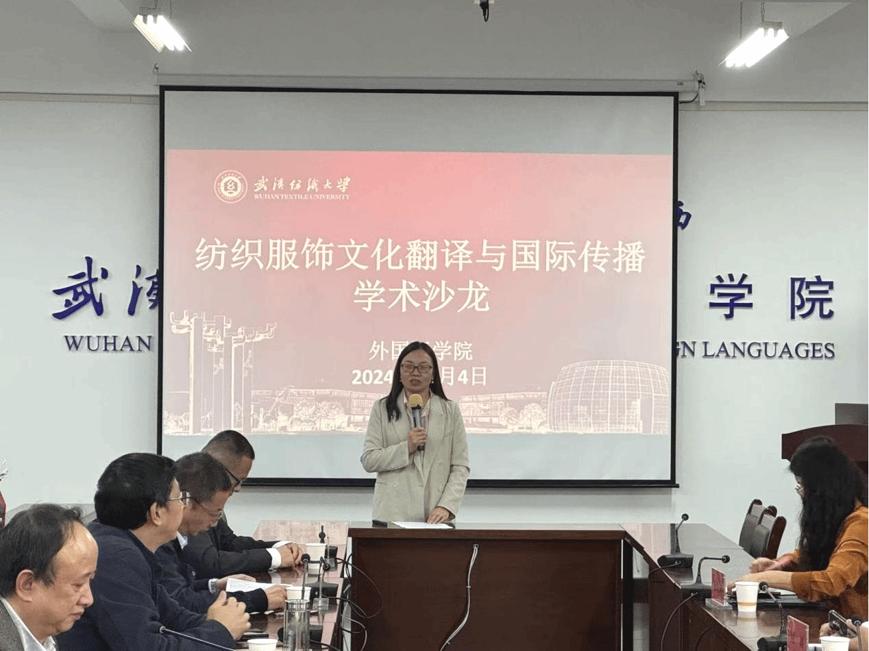 11月4日下午,51c吃瓜网每日大赛在崇文楼04-303成功举办以“纺织服饰文化翻译与国际传播”为主题的学术沙龙。本次沙龙特别邀请浙江理工大学杂志社副社长经渊、学术期刊《丝绸》副主编杨一舟、SILK编辑余晓娜,以及我校传媒学院副院长马庆、期刊社副编审李强作主旨发言。51c吃瓜网每日大赛党委书记胡中原、各系部教师和研究生、本科生参加了此次沙龙。活动由51c吃瓜网每日大赛副院长罗绮伦和刘方荣主持。