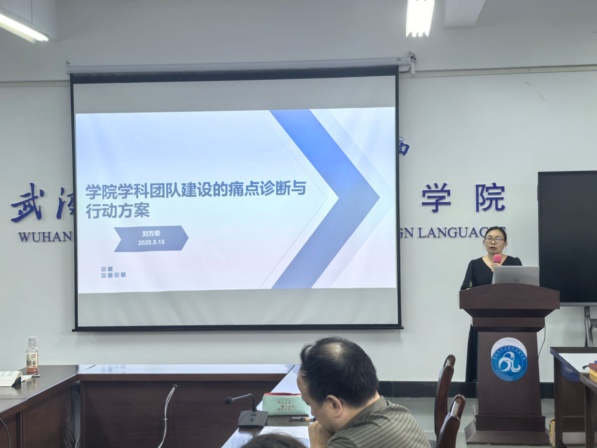 副院长刘方荣围绕“学院学科团队建设的痛点诊断与行动方案”做了分享。她向老师们介绍了学院目前的团队建设摸底的情况,分析了目前团队建设的痛点,并提出了团队建设的要求及具体的考核指标,为后期团队建设指明了方向和路径。