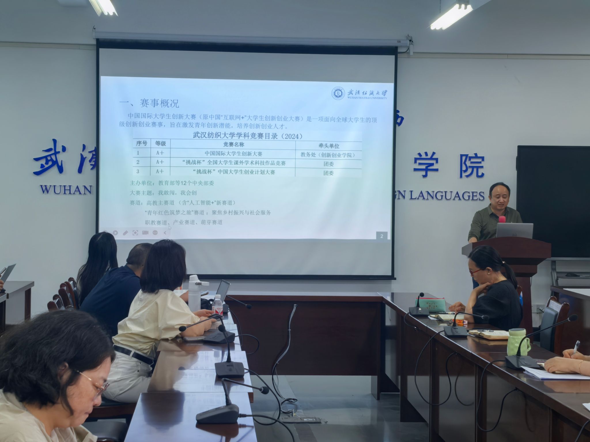 副院长罗绮伦则围绕“2025年中国国际大学生创新大赛”进行了动员。他梳理了大赛的概况及参赛的项目及类型等,提出学院的申报要求和指标,鼓励动员老师们积极申报该项赛事。