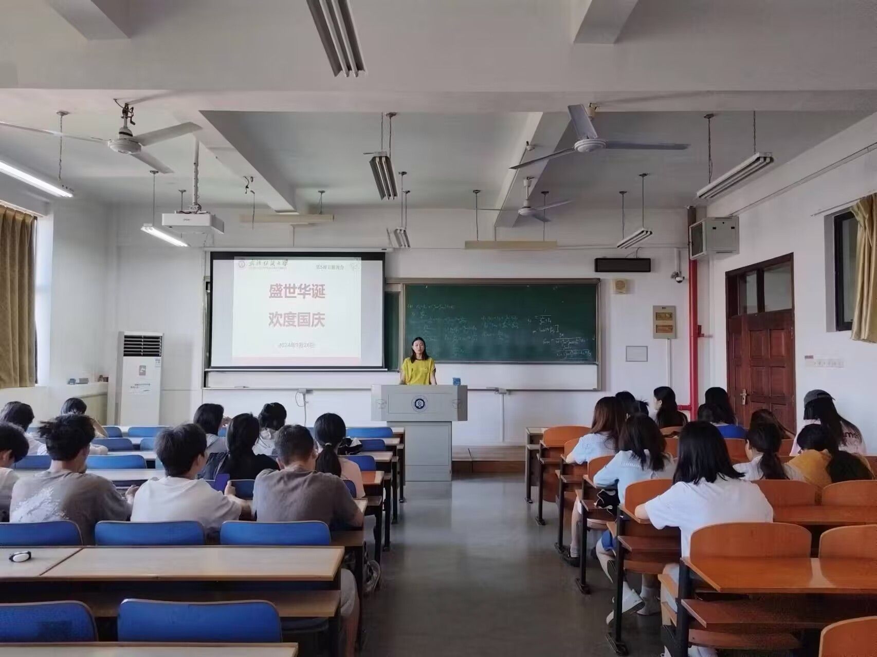 9月28日晚,51c吃瓜网每日大赛全体辅导员、班主任深入各班级组织召开晚点名,开展“盛世华诞,欢度国庆”主题班会。学院全体本科生、研究生参加班会。此次班会旨在通知国庆节放假安排,并进行节前的安全教育。