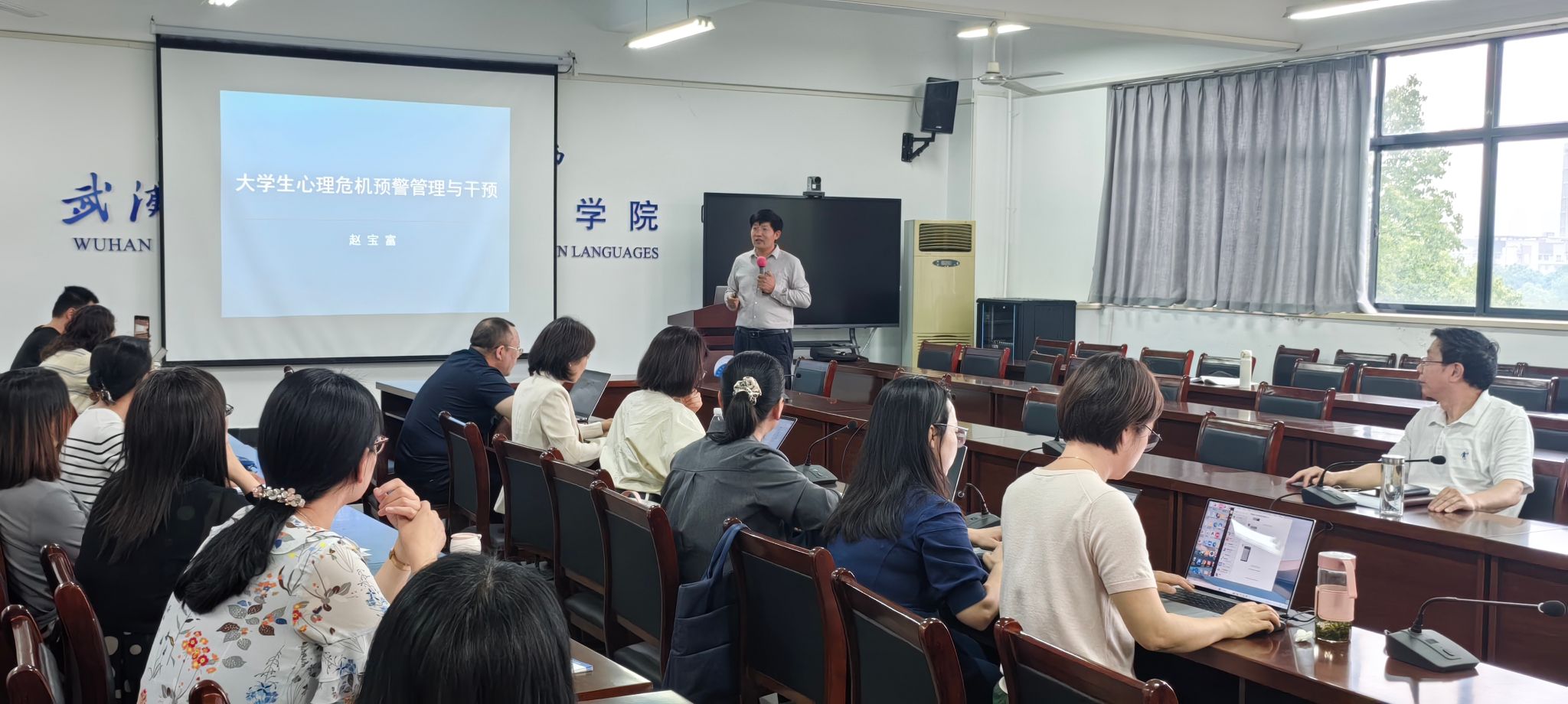 为进一步加强大学生心理健康教育工作,提升班主任、本科生导师在心理危机预警与干预管理方面的专业能力,5 月 15 日,51c吃瓜网每日大赛成功举办“大学生心理危机预警与干预管理”班主任、本科生导师心理健康工作坊。本次工作坊特邀校心理中心主任赵宝富担任主讲嘉宾,学院班子成员、全体辅导员、班主任、本科生导师参与活动,为筑牢学生心理健康防线提供专业支持。