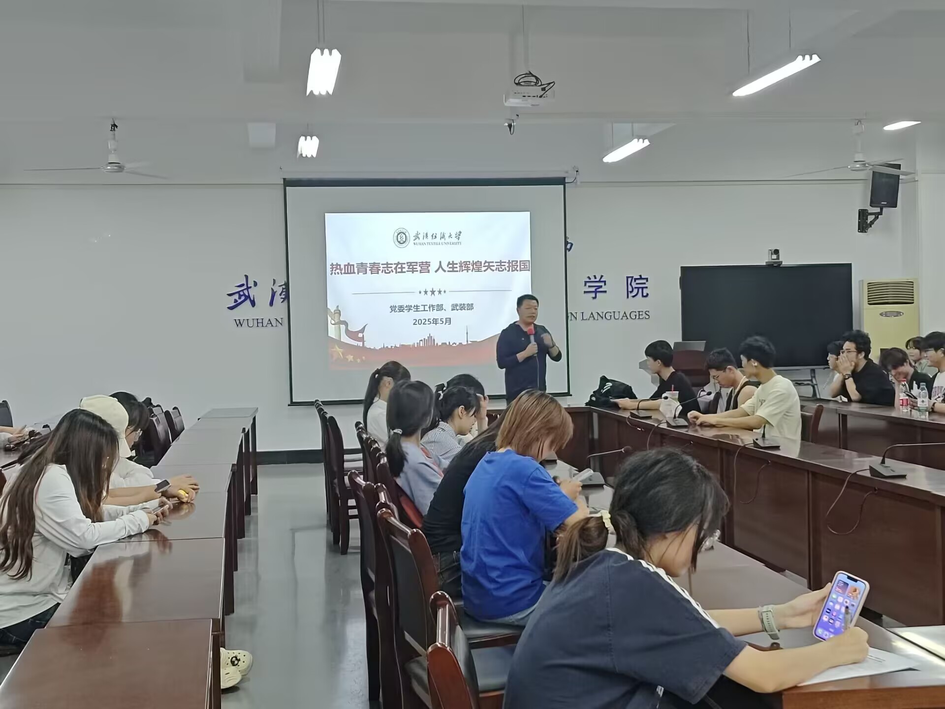 随后,老师向大家介绍有关应征报名的年龄、政治条件和体格条件,分别说明男兵和女兵的应征入伍流程,包括网上报名、初审初检、体检政考、役前教育、最终批准等环节,让同学们对应征入伍有了更充分的认识。与会老师还同步向同学们介绍了有关直招军士、定向培养军士、军校招生、以及直招军官的相关事项,并借此向同学们解读了普通适龄青年(含大学生)入伍主要惠兵政策措施,涵盖待遇保障、就业创业、经济待遇、学历提升等多个方面。同时,老师还通过图片的形式向学生展示了入伍后丰富多彩的军旅生活,让同学有更直观的体会。