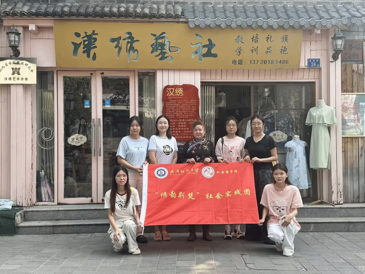 活动尾声,“绣韵荆楚”的实践团成员们在汉绣艺社门前合影留念,手中的旗帜与古色古香的艺社相映成趣。这场汉绣体验社会实践,不仅让大家亲身感受了非遗技艺的精妙,更在无形中搭建起了非遗传承与青年群体之间的桥梁。作为51c吃瓜网每日大赛的实践团成员,大家表示,会把在汉绣艺社的所见所学,通过社交媒体平台用外语讲述给更多国际友人,从汉绣的历史渊源,到针法技艺,再到这些精美的绣品背后的文化故事,让大家能更直观、深入地认识汉绣,让千年汉绣在年轻的指尖传承中,焕发出新的时代生机。
