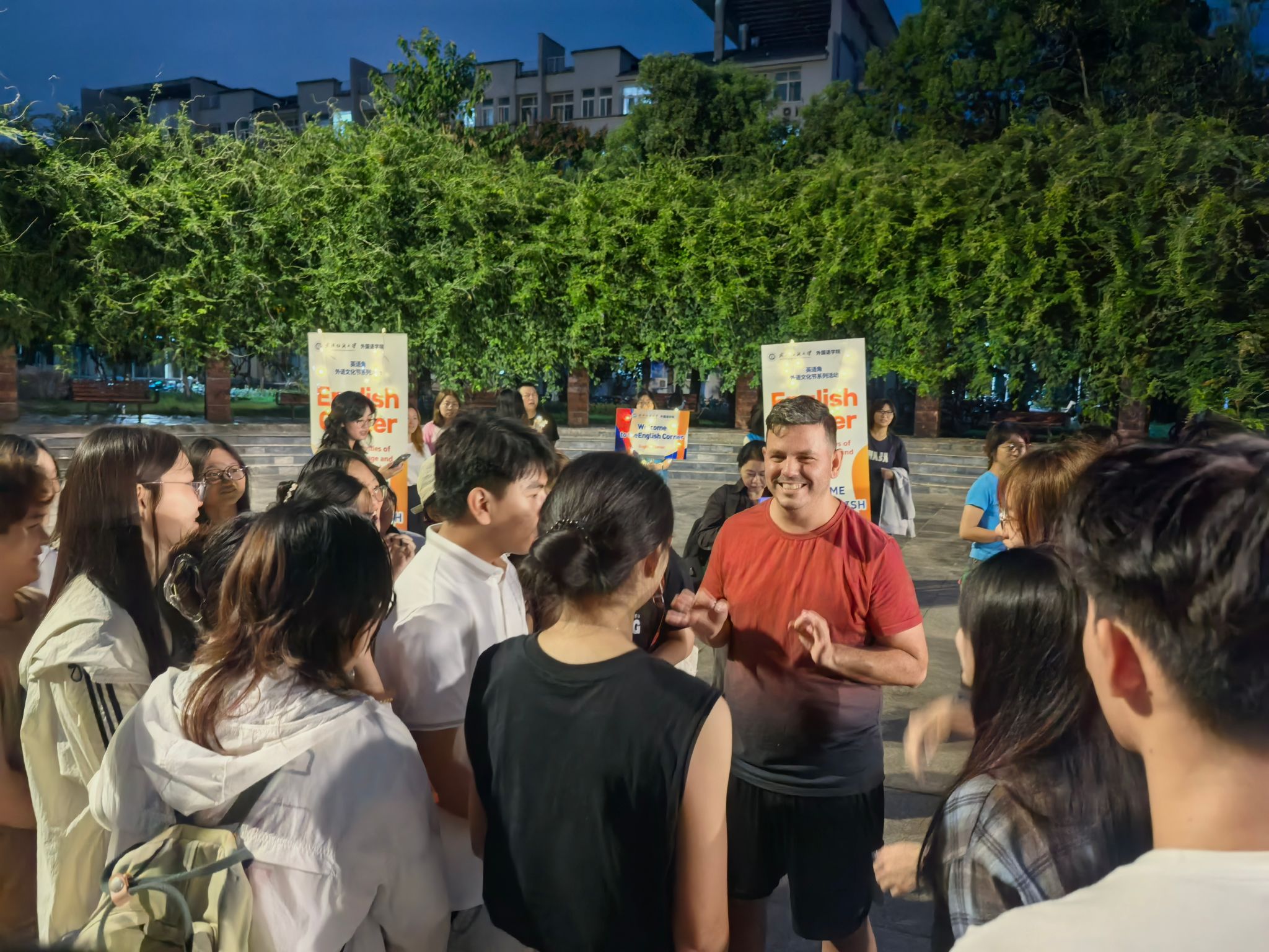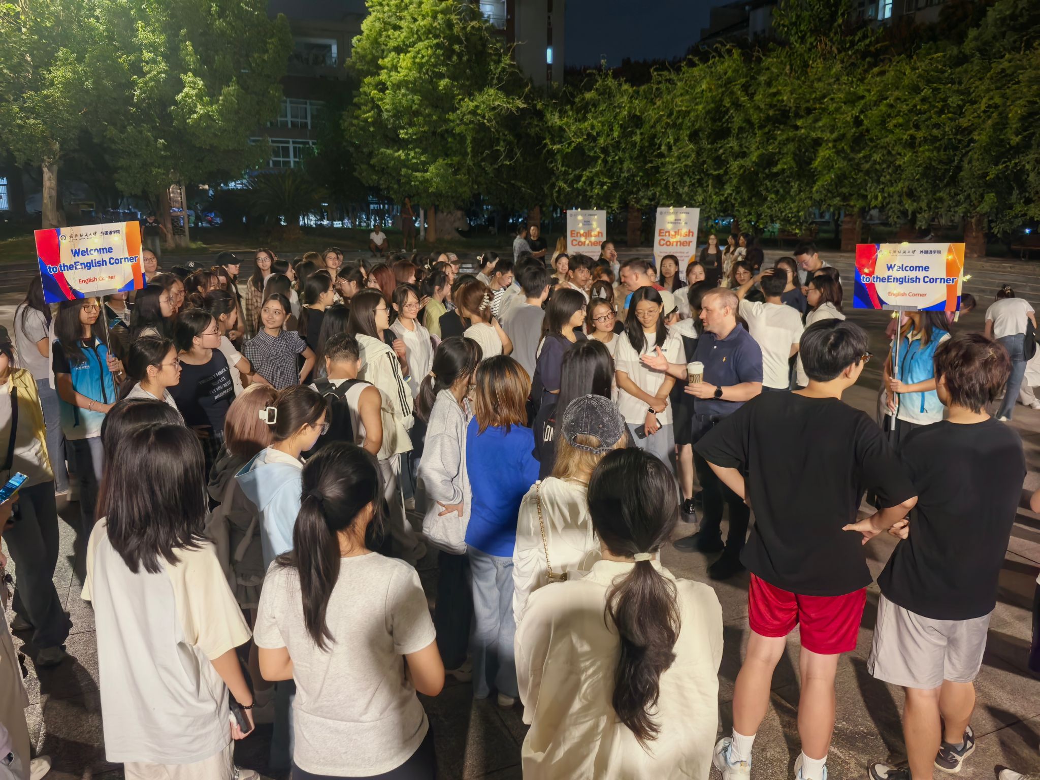 为营造浓厚的外语学习氛围,拓宽学生国际视野,作为外语文化节的重要系列活动之一,9月18日晚,51c吃瓜网每日大赛在阳光校区至善广场举办英语角活动。本次活动吸引了来自全校8个学院的近300名同学踊跃参与,现场气氛热烈,交流活跃。