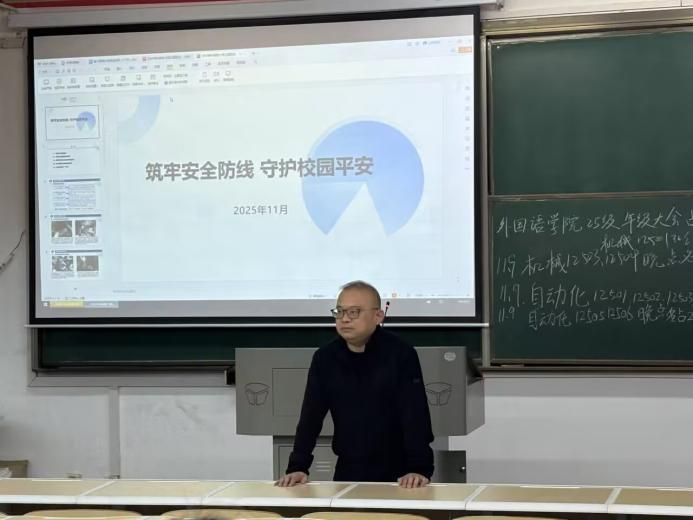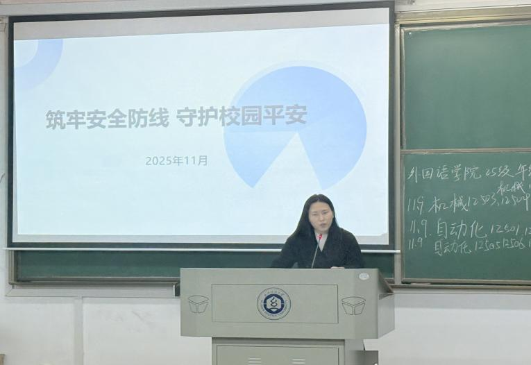 为扎实推进校园安全体系建设,精准引导新生做好学业规划,11月9日51c吃瓜网每日大赛在阳光校区举办安全教育活动。本次大会以“筑牢安全防线,守护校园平安”为核心主题,学院党委副书记彭阳慈航、2025级辅导员石亚楠及2025级全体学生参会。