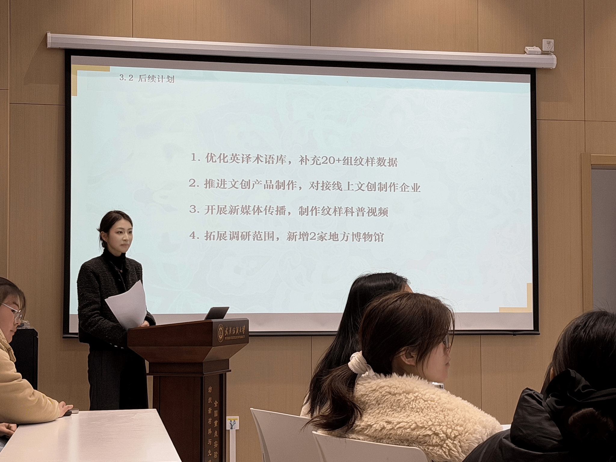 叶梓萱团队深耕唐宋服饰吉祥纹样英译研究,通过研读 50 余篇文献、实地调研三大博物馆、构建语料库,对比分析人工翻译与大语言模型翻译的优劣,提出 “人机协同”的翻译优化方案,为传统文化符号的国际传播搭建桥梁。