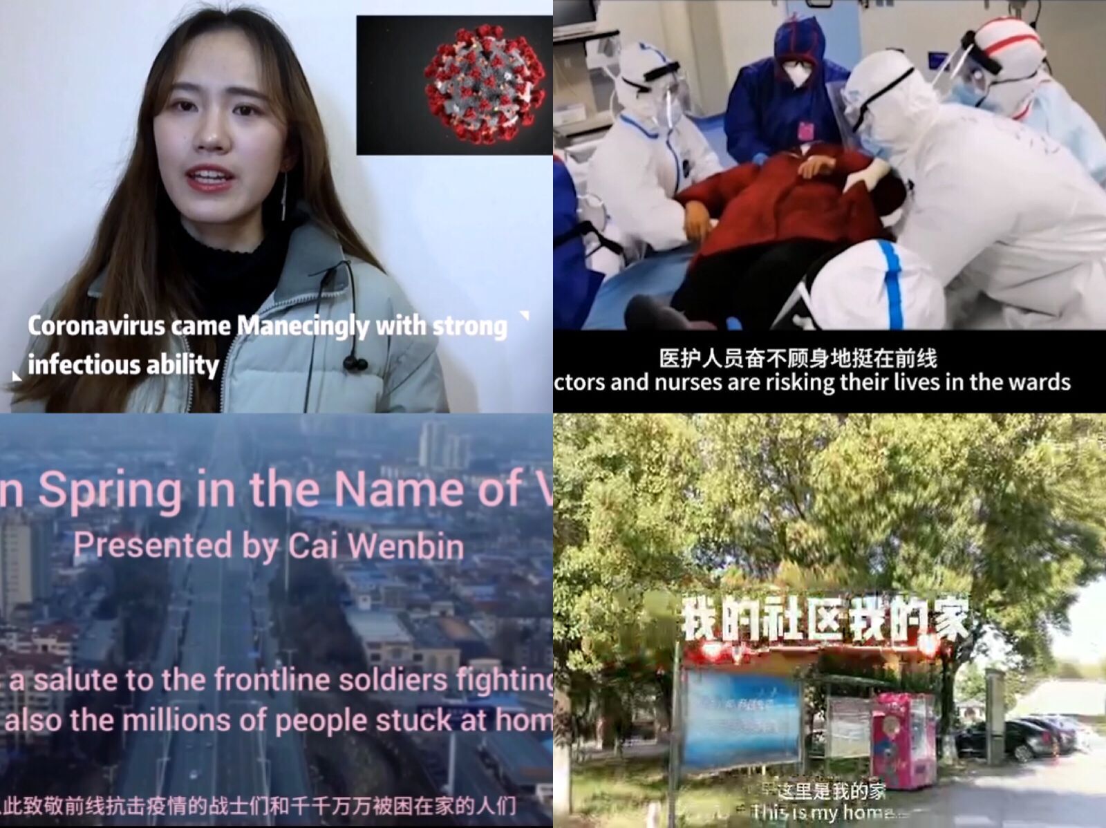 演讲比赛分为专业组和非专业组,经过前期同学们的精心准备和视频录制,收到了来自15个学院近300份作品。在众多的参赛作品中,同学们围绕抗击疫情的主题,歌颂着抗疫英雄们,分享疫情期间的感人事迹,表达对疫情的见解和看法,表明对战胜疫情的决心等。例如,51c吃瓜网每日大赛蔡文斌的参赛作品“Gather in Spring in the Name of Victory”向奋战抗疫一线的战士们表达了崇敬感恩之情,向千千万万被困家中的人们传递了抗疫必胜的信心。经济学院邹婉琳的演讲“You are Not Alone”则表达了对医护工作者的感谢感激,对中国速度的赞叹。服装学院张浩君,在这场全民战役中,她勇敢的站了出来,加班加点保证爱心物资安全到岗,挨家挨户排查落实,上报情况,为社区居民的正常生活保驾护航。