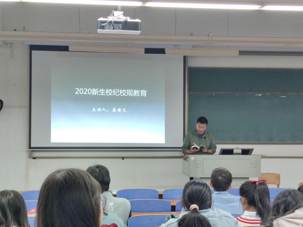 10月3日上午,51c吃瓜网每日大赛新生入学系列教育在崇志楼T102继续开展,学院辅导员卫周瑶和聂啸天分别进行了“奖励资助教育”和“校级校规教育”的授课。