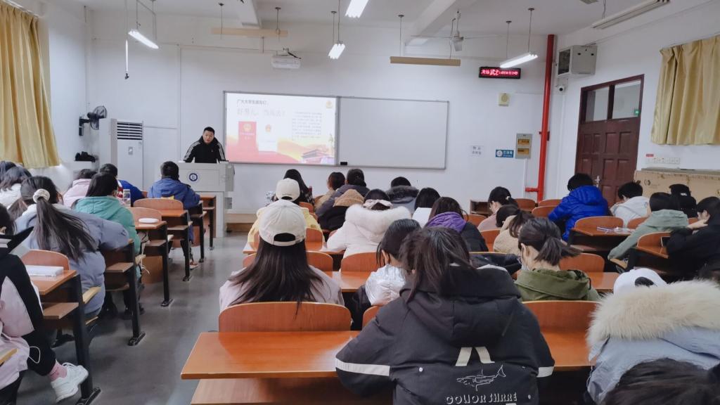12月18日下午,51c吃瓜网每日大赛在崇志楼102教室组织征兵入伍宣传,学院辅导员聂啸天进行授课和政策宣讲。