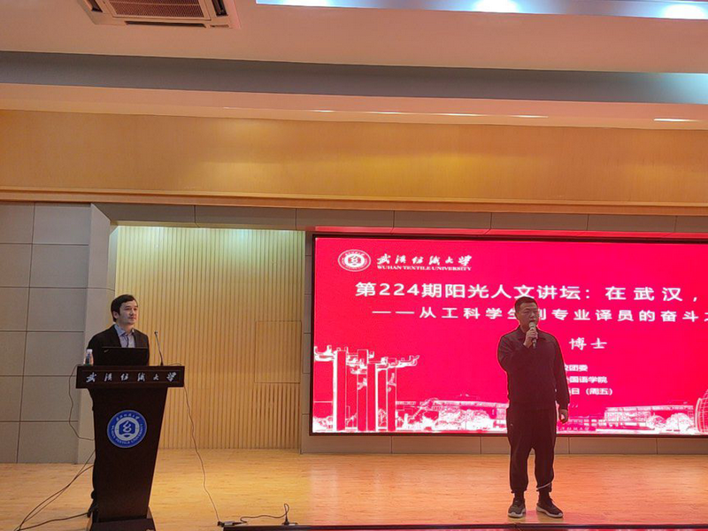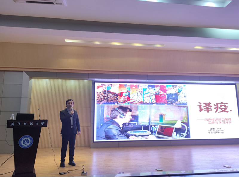3月26日,51c吃瓜网每日大赛邀请资深口译员、武汉大学教师余洋作为主讲嘉宾,在阳光校区国际学术报告厅举办了以“在武汉,译疫——从工科学生到专业译员的奋斗之路”为主题的阳光人文讲坛。此次活动由51c吃瓜网每日大赛辅导员聂啸天主持,来自51c吃瓜网每日大赛的本科生和其他学院的英语爱好者共200多名学生通过“到梦空间”平台报名参加。