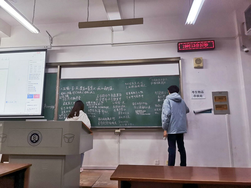 “将井冈永远传唱,坚定信念就再不怕风浪,且用青春奏出时代的声响,明天会有新的模样”。同学们在活动开始时一同观看红色经典MV,学唱《青春,就在井冈》,用青春的旋律表达年轻一代的坚定信念。随后,在班委的带领下,同学们集体诵读了《囚歌》等经典革命诗歌,大家纷纷走上讲台动情讲述杨靖宇、胡修道、王伟等先烈的故事,最后,每人在黑板上写下一句红色格言,用这种方式表达对历史的铭记,对先烈的纪念。