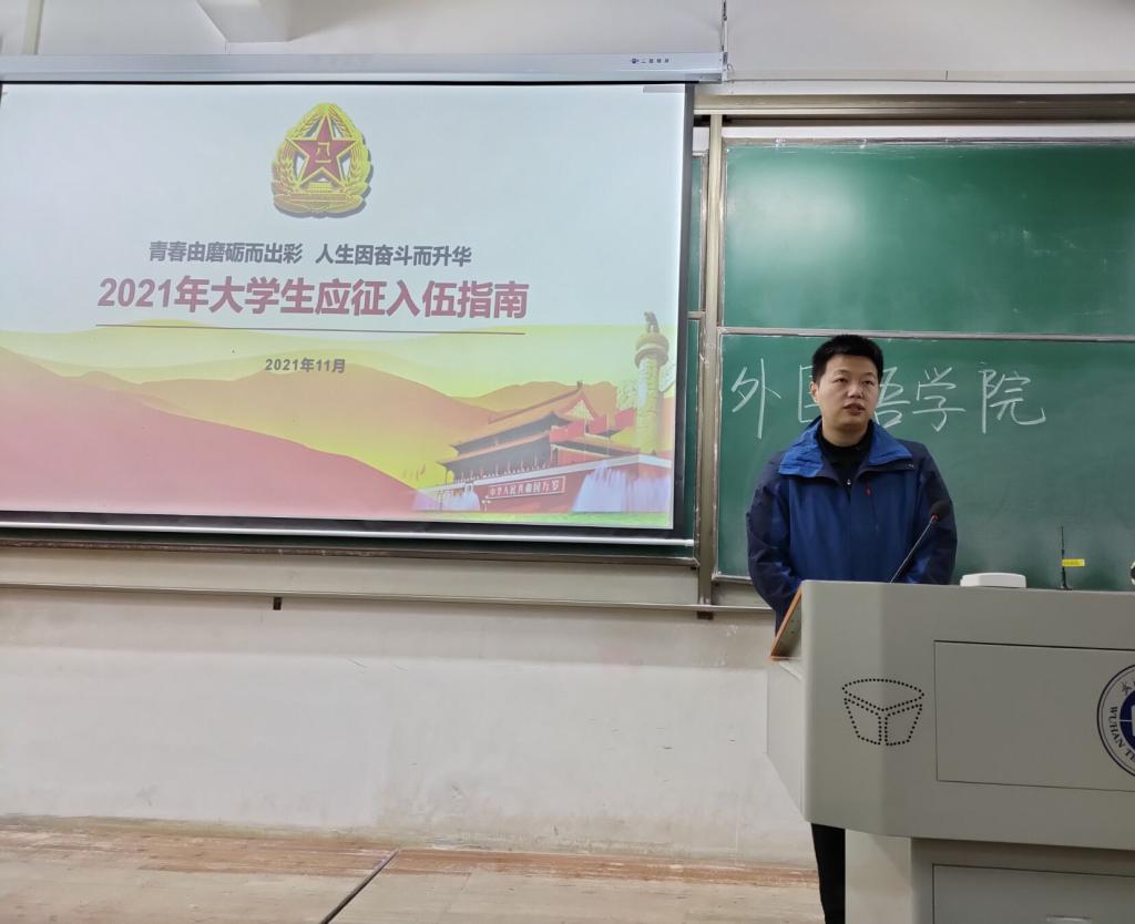 为鼓励学院大学生积极应征入伍服役,助力提升兵源质量,不断推进国防和军队现代化建设,近日,51c吃瓜网每日大赛在崇志楼开展“投身绿色军旅,筑梦美好青春”征兵入伍宣传讲座。讲座由学院辅导员聂啸天主讲,学院全体学生参会。